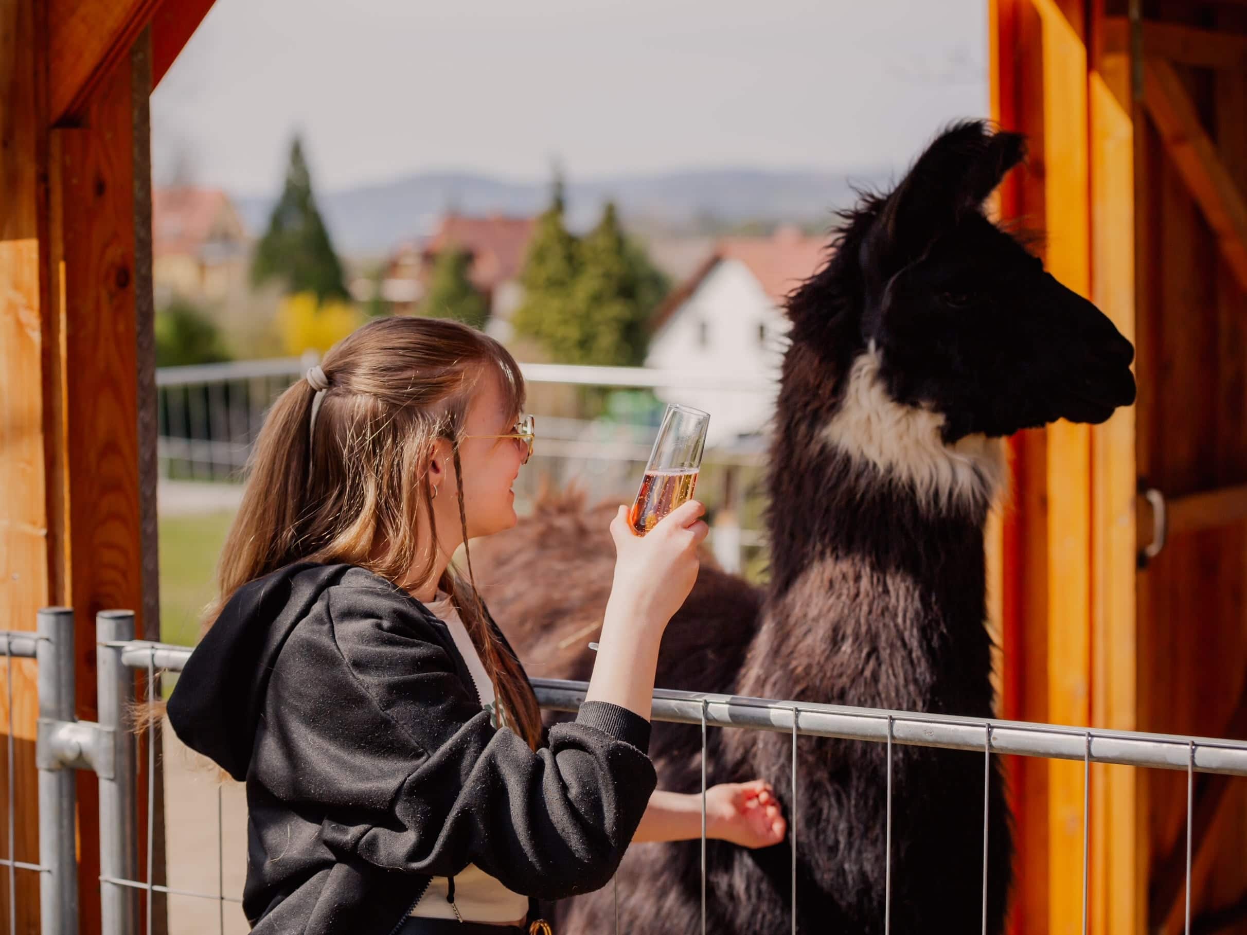 - Begrüßung auf der Alpakaweide mit Sekt & kleinen Naschereien