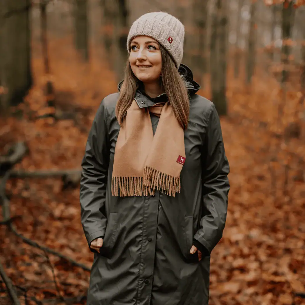 - Farben: camel, tannengrün, schwarz, aubergine, weinrot, türkis